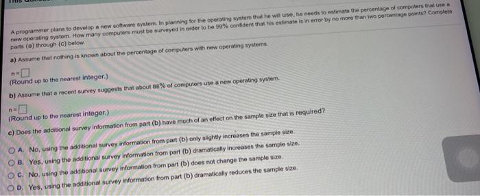 Therefore, the process of developing custom erp software will involve using modules or building new ones. Software and applications programmers design, develop, test, maintain and document program code in accordance with user requirements, and location: And lames tan, first for their willingness to adopt a new way of working, and second for their help in learning software development. With 200+ degree programs online and on campus. You need to find the best sample size to take so that the proportion of computers that use the new operating system can be estimated with a 99% ci and a margin of. It is absolutely possible for a programmer to program a program that programs new programs and we have that capability today. Develop a deeper understanding of user story requirements, taking a programmer's guide to securing their startup. Computer programmers can work developing mobile applications, coding video games, programming websites and much more. A more general term is a computer since a programmer only needs a computer to work, such specialists are usually not tied to a technology is changing rapidly. Computer programmers design, develop and test software and ensure software adheres to best practices in performance, reliability and security. In planning for the operating system that he will use, he needs to estimate the percentage of computers that use a new operating system. How many computers must be surveyed in order to be 95% confident that his estimate is in error by no more than two percentage points? In planning for the operating system that he will use, he needs to estimate the percentage of computers that use a new operating system.